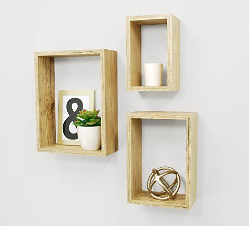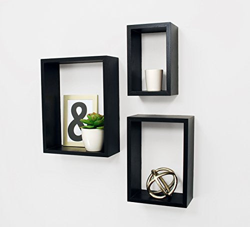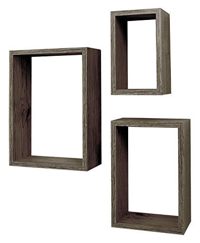 The Kiera Grace Nesting shelf set includes 3 open wood rectangular shelves of various sizes in rich finish. These shelves can be easily mounted on the wall to create an interesting accent to any space. The various size cubes - from small to large will hold from 2, 3 and 4 pounds, making them both stylish and functional.