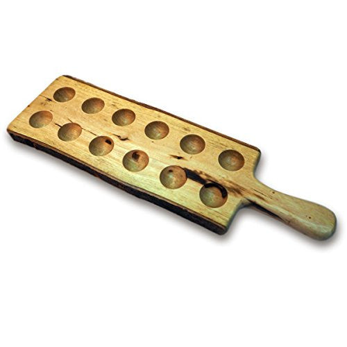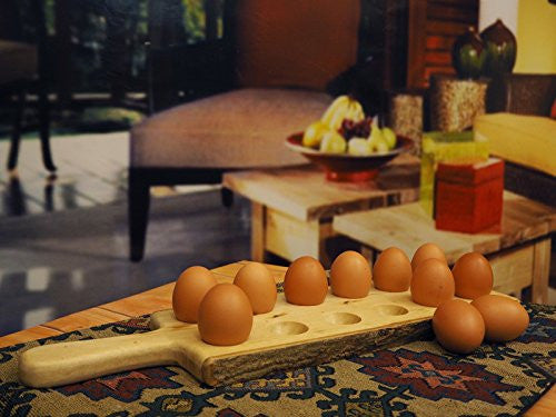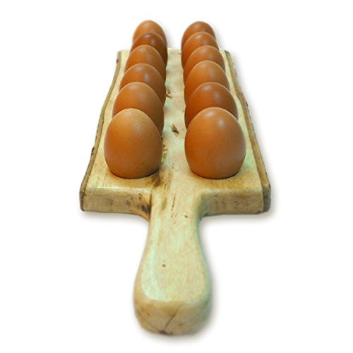 Upgrade your kitchen and serveware with this charming RoRo rustic and reversible egg tray / serving platter. The wood is sustainable, taken from orchard trees that are no longer fruit bearing. This wonderful egg server is hand-carved from a single piece of mango wood, replete with its orginal bark on the sides. It's perfect for a kitchen countertop or dining table, as a display or to hold eggs, spices, nuts, or a presentation platter for dishes such as deviled eggs. The reverse side is flat and is perfect for serving cheese and appetizers, or to use as a simple cutting board. The final product is coated in a food-safe finish.