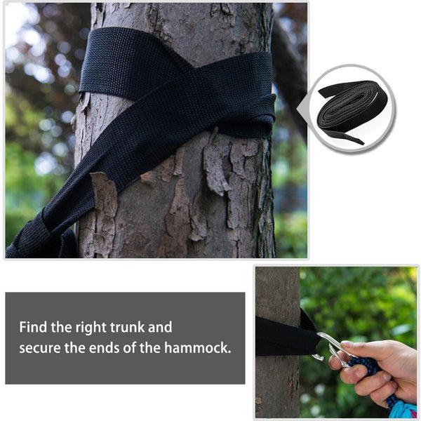 - Firstly, find a suitable tree, then fix the both ends of hammock.