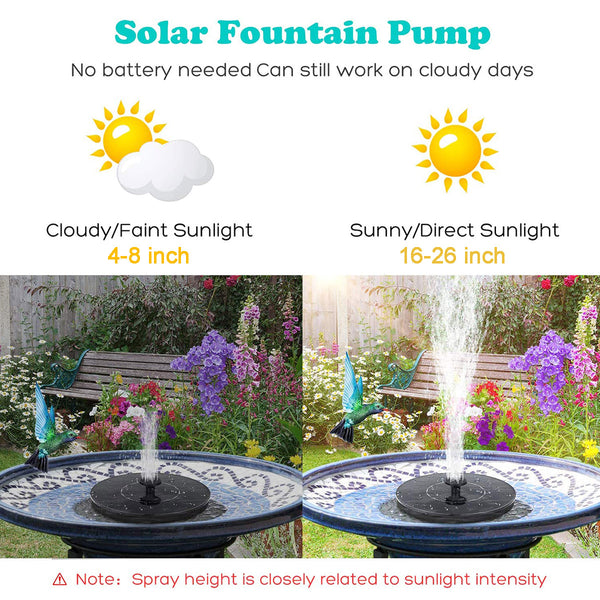 【2022 Upgrade Solar Fountain】The sunbird bath fountain with a diameter of 16 cm can run automatically in 3 seconds under direct sunlight, and the spray height is 30-60 cm. No electricity or batteries are required. Easy to use, environmentally friendly and energy-saving