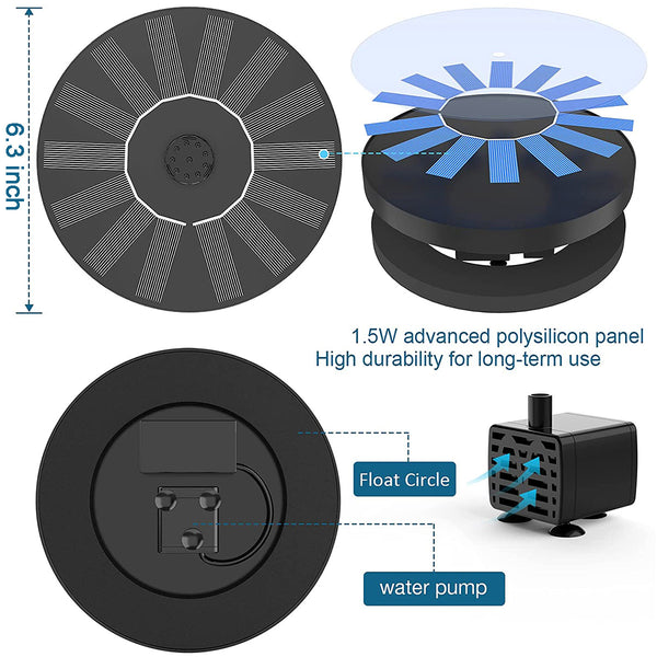 Solar Fountain Floating Solar Powered Bird Bath Fountain Water Pump Kit For Outdoor Watering Garden Pool Fish Tank