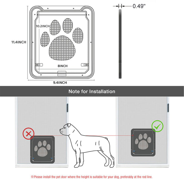 Easy to Install & Use: Our dog screen door is easy to install. You can install it by your own. It's also easy for your beloved pets to push or close.